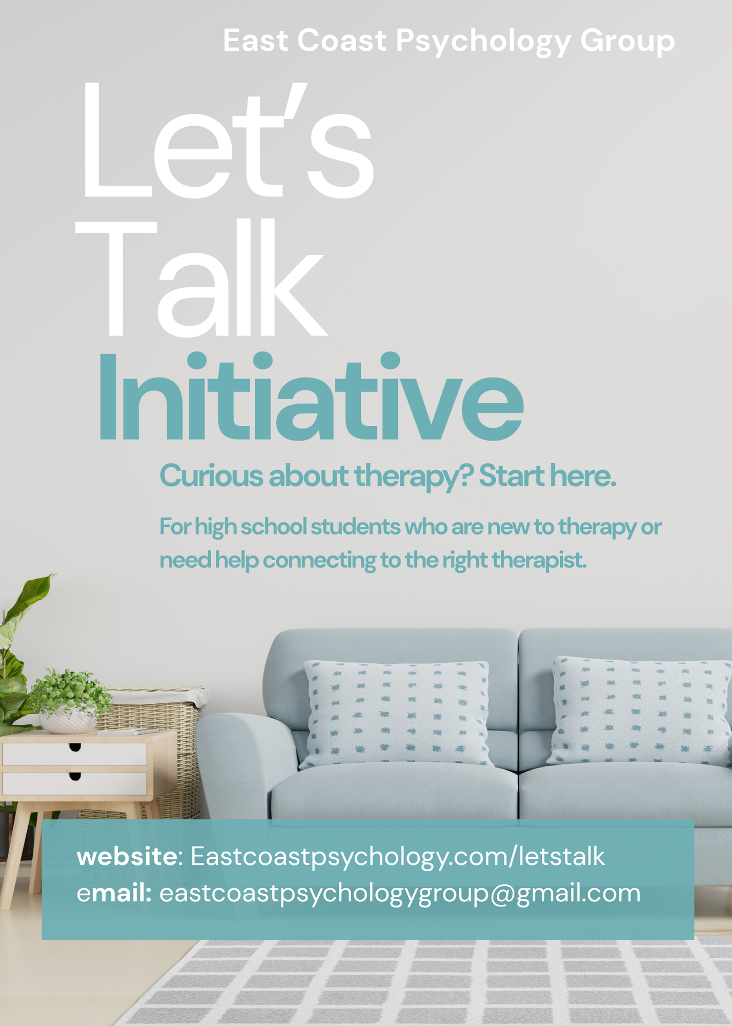 Let’s Talk is a supportive introduction to therapy for high school students who are interested in exploring what therapy is, how it works, and whether it might be helpful for what they’re going through.